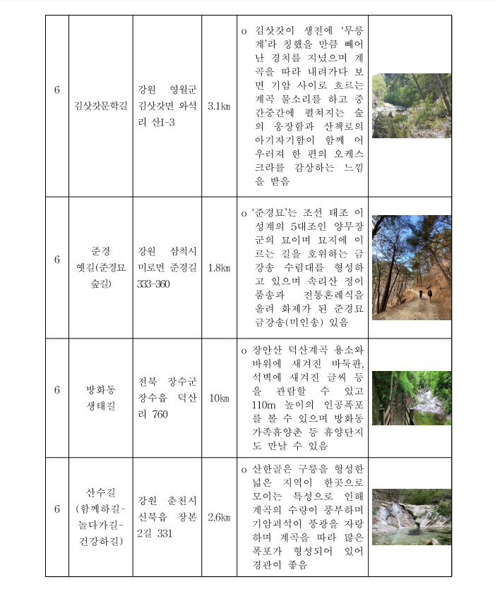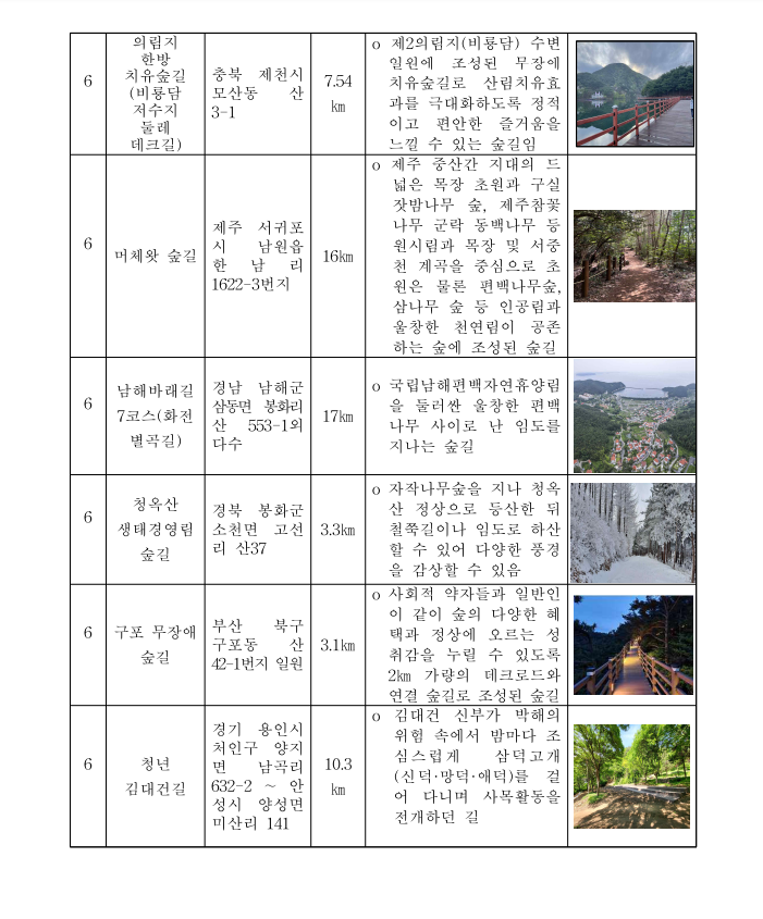 숲길명과 소재지 길이 내용에 대한 자세한 내용도 확인하세요.