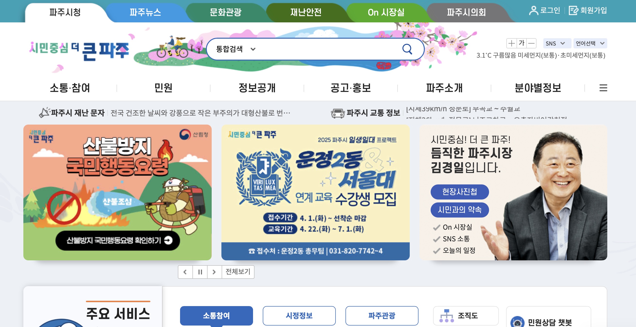 파주시청 홈페이지에서는 다음과 같은 주요 서비스를 제공